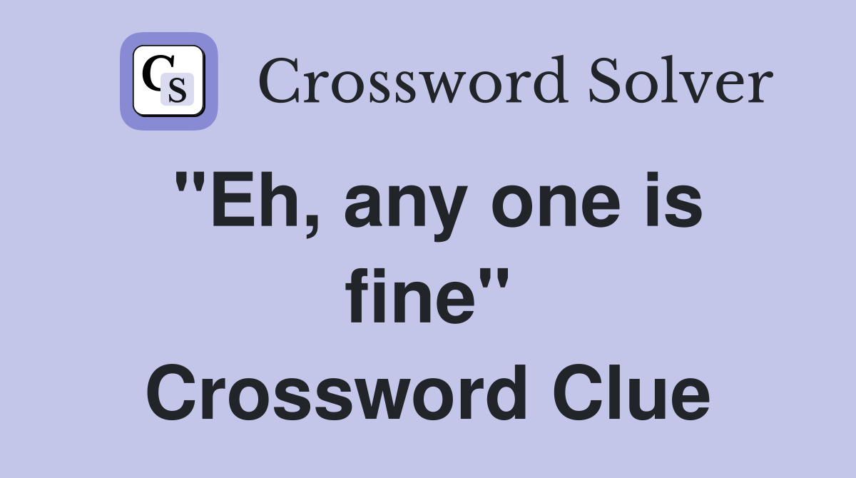 quot Eh any one is fine quot Crossword Clue Answers Crossword Solver