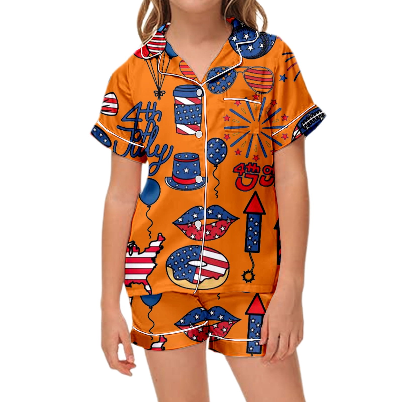 Girls Pajama Set Cartoon Prints Button Down Homewear Set Kids Pajamas