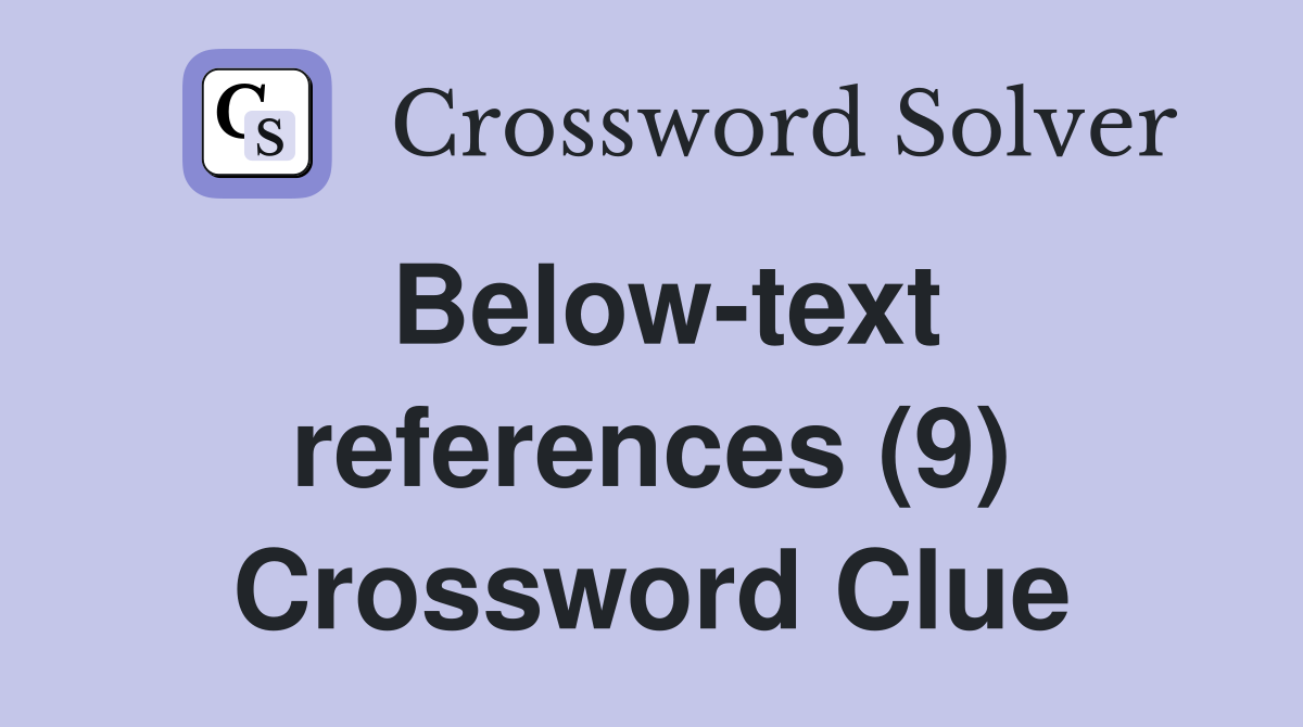 Below text references (9) Crossword Clue Answers Crossword Solver