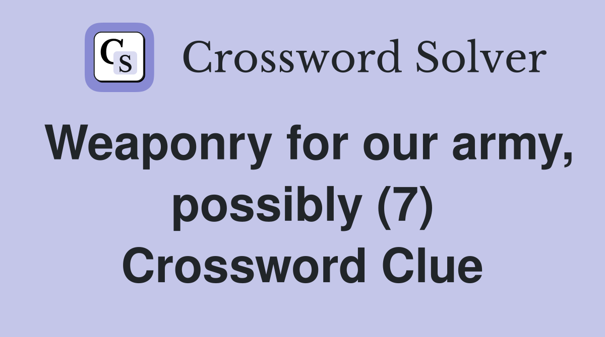 Weaponry for our army possibly (7) Crossword Clue Answers