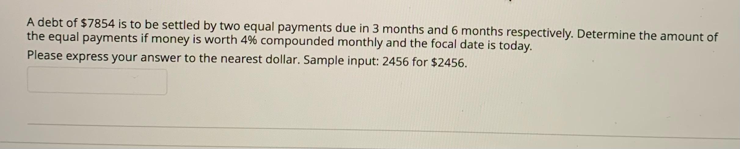 Solved A debt of $7854 is to be settled by two equal Chegg com