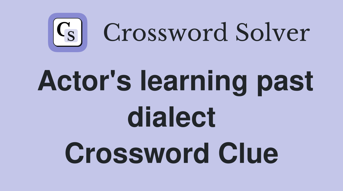Actor #39 s learning past dialect Crossword Clue Answers Crossword Solver