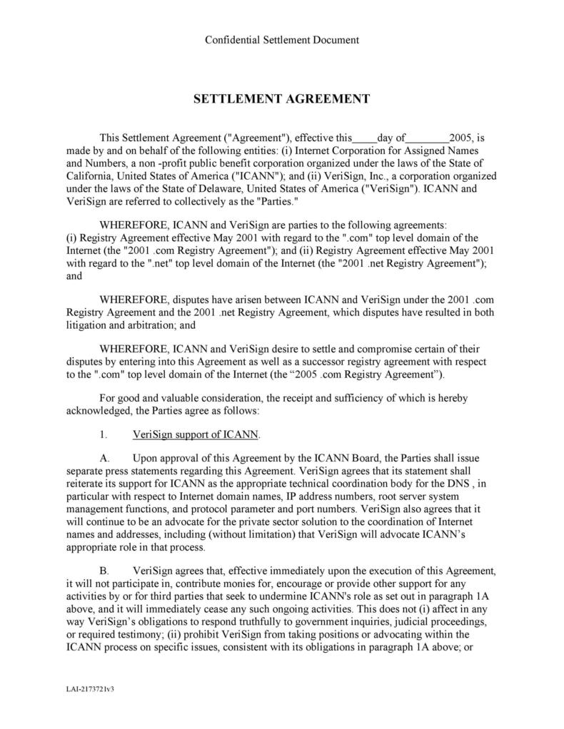 Settlement Agreement Template In Word