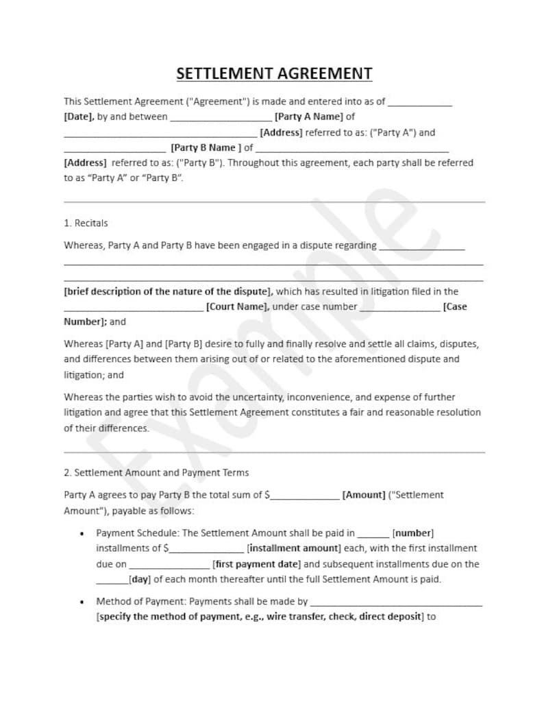 Settlement Agreement Template Etsy