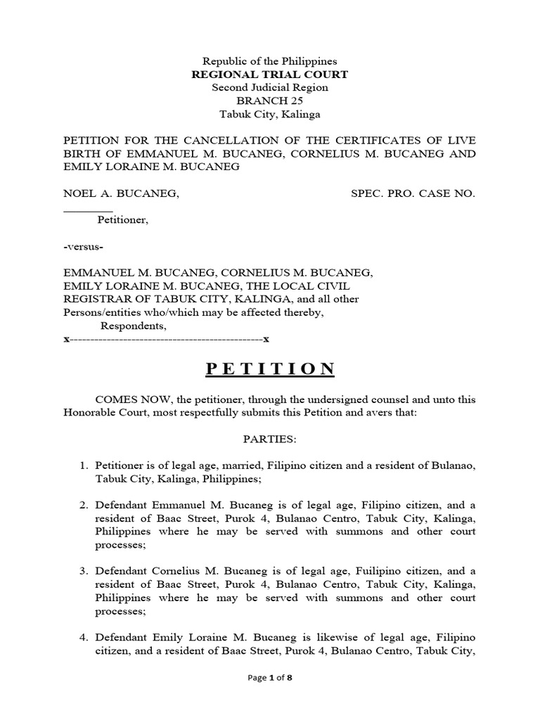 Petition For Cancellation of Birth Certificate Bucaneg PDF