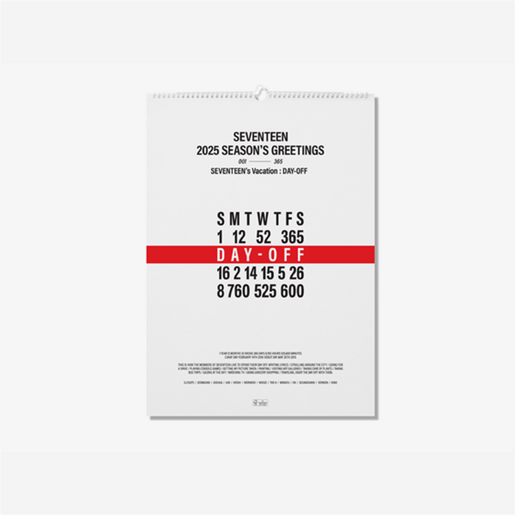 (Sale) SEVENTEEN 2025 WALL CALENDAR SEVENTEEN #39 s VACATION : DAY OFF