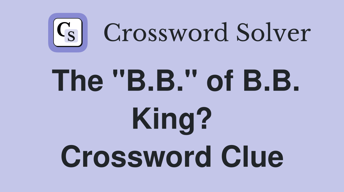 The quot B B quot of B B King? Crossword Clue Answers Crossword Solver