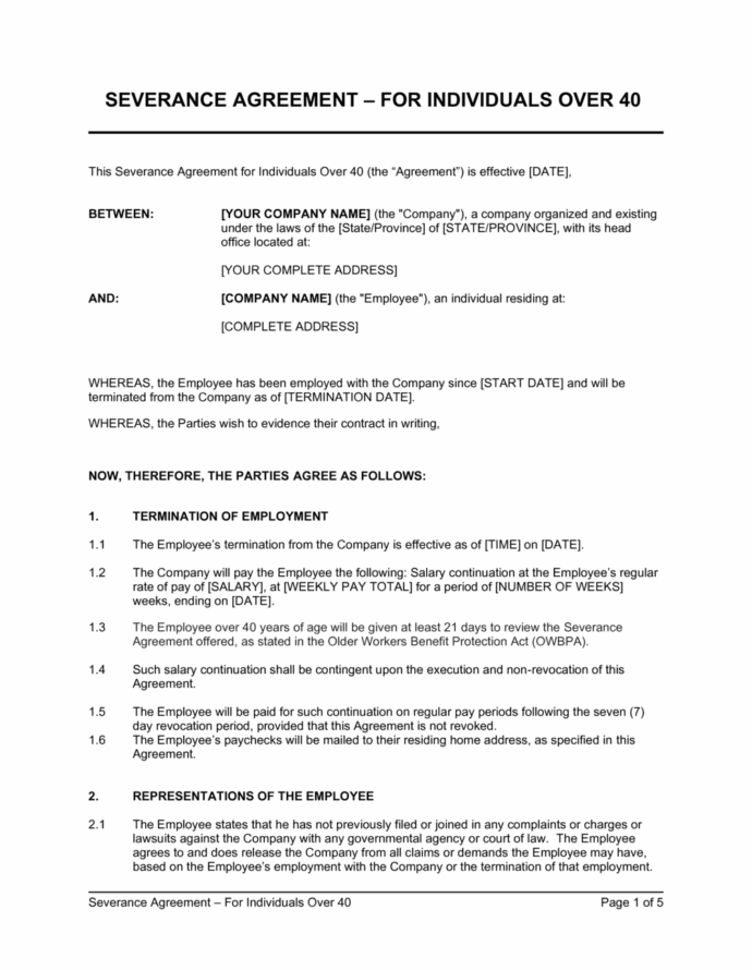 Severance Agreement Template Over 40