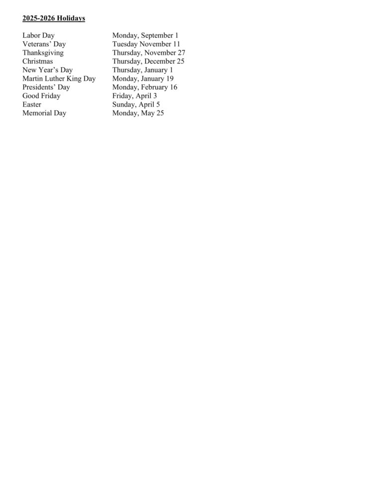 Wilson County Schools Calendar 2024 2025 (Holiday Breaks)