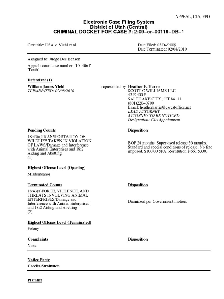 Electronic Case Filing System District of Utah (Central) CRIMINAL