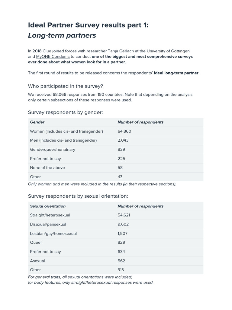 Clue Ideal Partner Survey Results Long Term PDF Physical