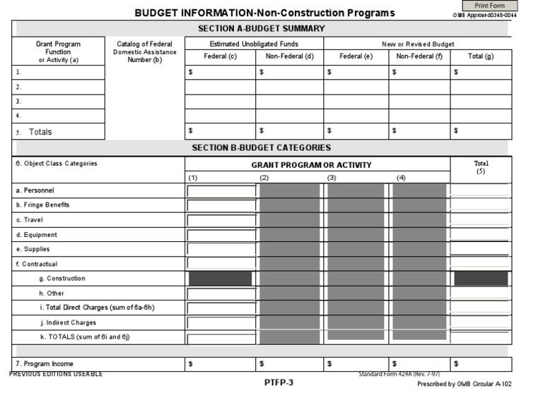 Fillable Online 600 107 Form SF 424A Budget Information Non