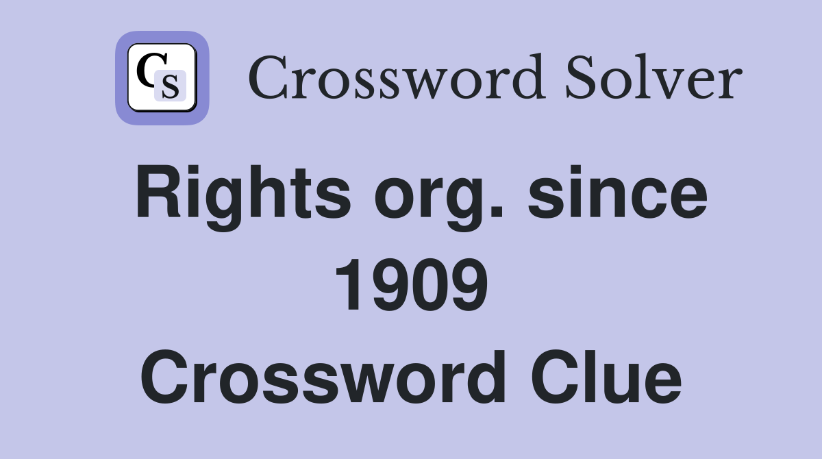 Rights org since 1909 Crossword Clue Answers Crossword Solver