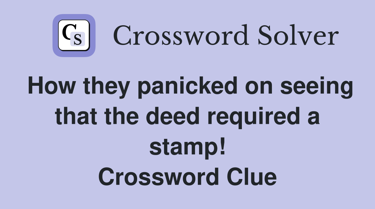 How they panicked on seeing that the deed required a stamp Crossword