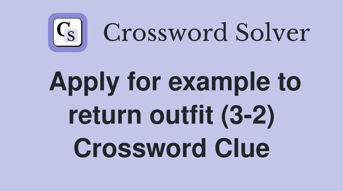 Apply for example to return outfit (3 2) Crossword Clue Answers