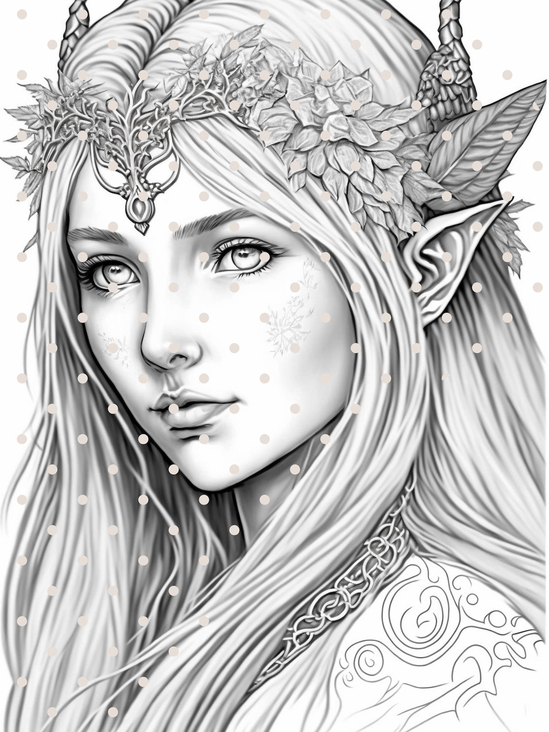Grayscale Coloring Pages Elf Fairy Printable PDF Instant Download