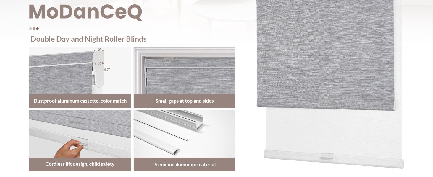 MoDanCeQ Dual Roller Shades Cordless Double Window Shades Blackout and