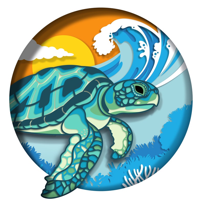 3D Sea Turtle Caretta Caretta Shadow Box Template SVG Etsy