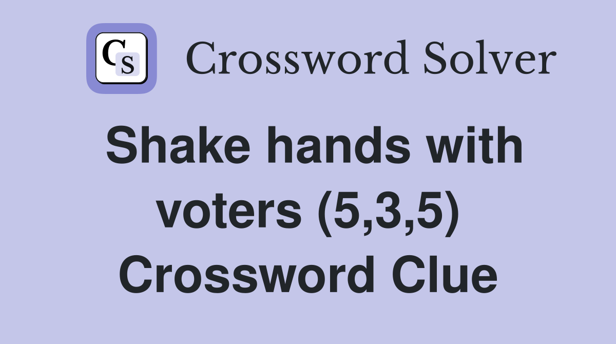 Shake hands with voters (5 3 5) Crossword Clue Answers Crossword Solver