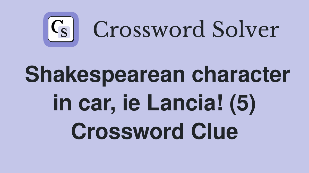 Shakespearean character in car ie Lancia (5) Crossword Clue Answers