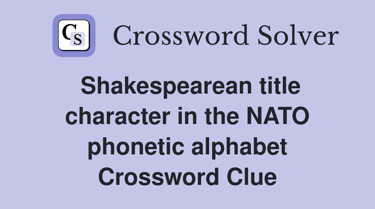 Shakespearean title character in the NATO phonetic alphabet Crossword