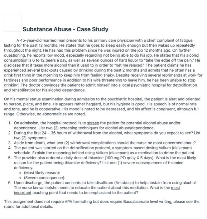 Solved Substance Abuse Case Study A 45 year old married Chegg com