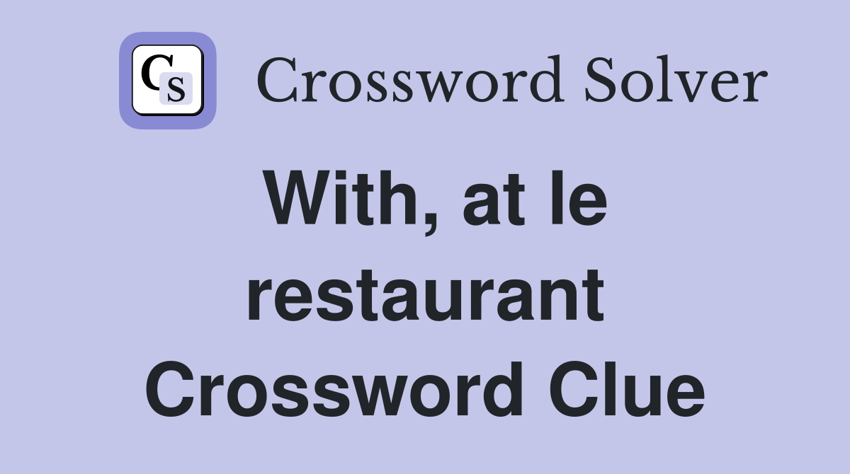 With at le restaurant Crossword Clue Answers Crossword Solver