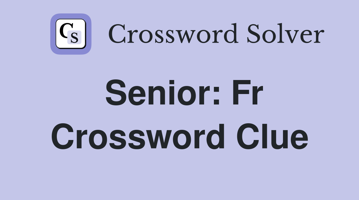 Senior: Fr Crossword Clue Answers Crossword Solver