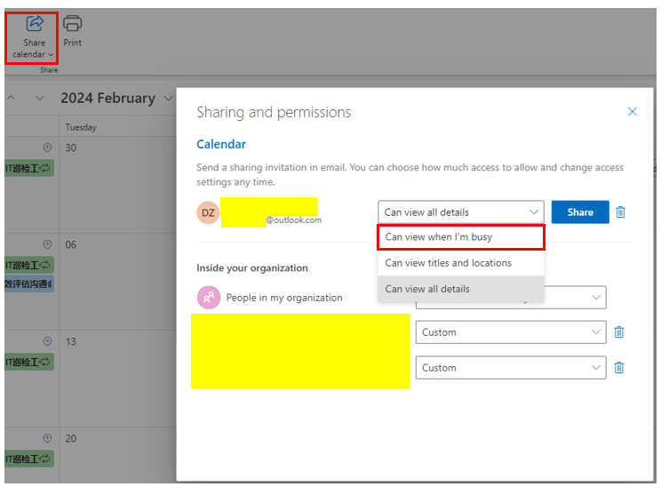 Share Calendar or Change Calendar Permissions in Outlook Office of
