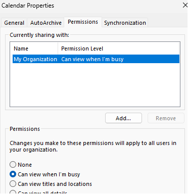 How to View Calendar Permissions to see if your Outlook Calendar is