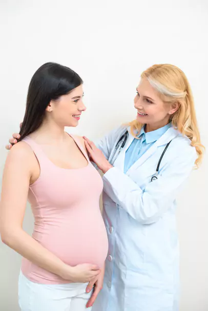 Premium Photo Smiling pregnant patient talking to doctor which is