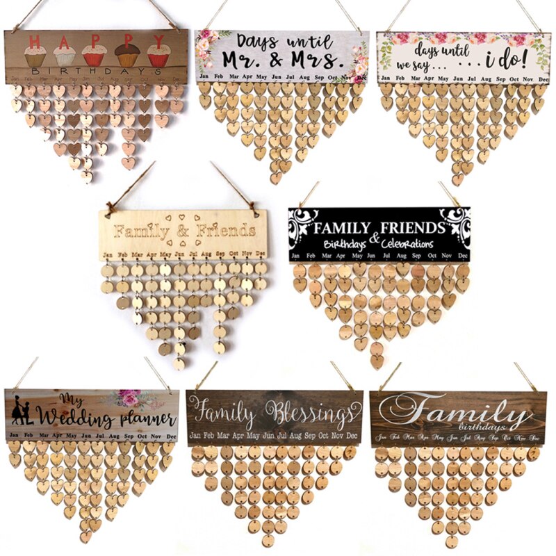 Wall Hanging Calendar Wood DIY Friend Family Birth Vicedeal