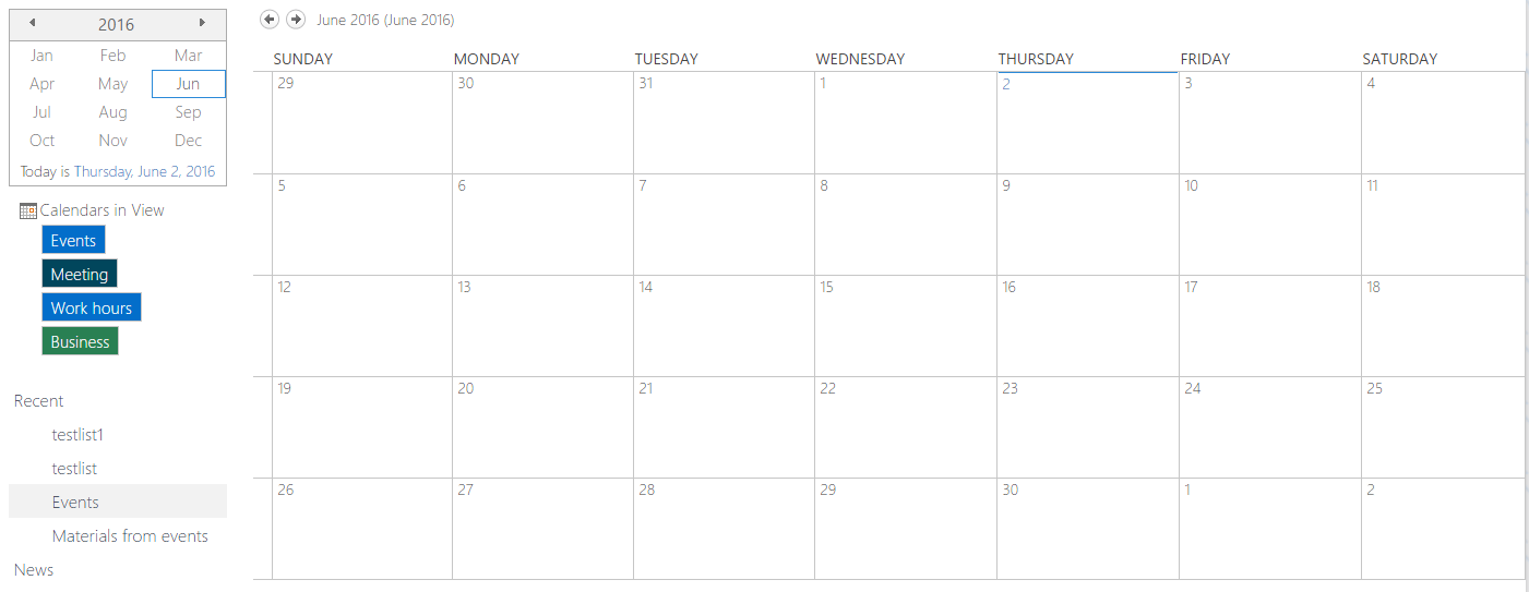 Sharepoint on Premise 2016 Calendar Microsoft Q A