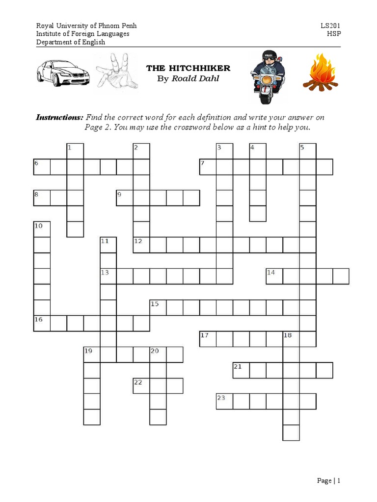 The Hitchhiker by Roald Dahl Vocabulary Crossword Puzzle by M Walsh