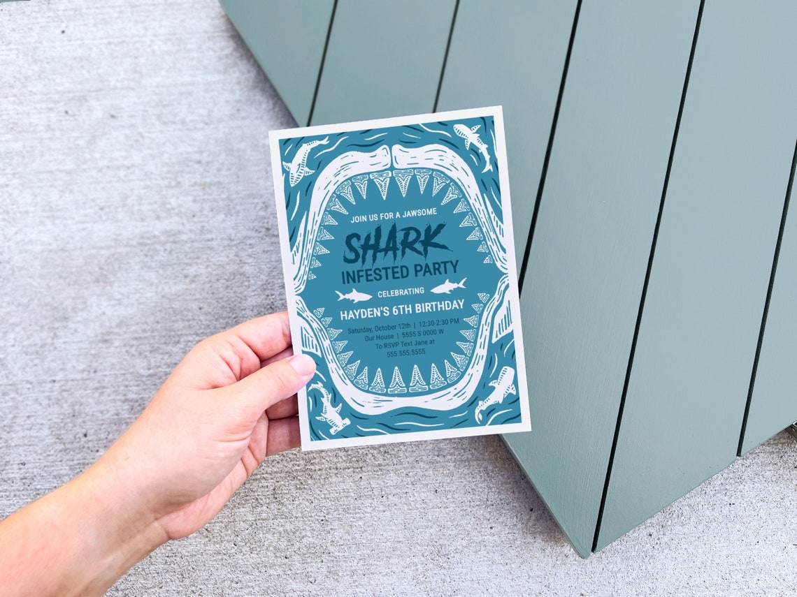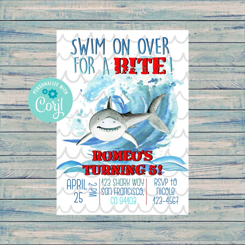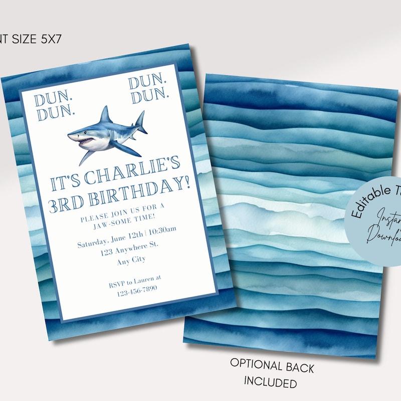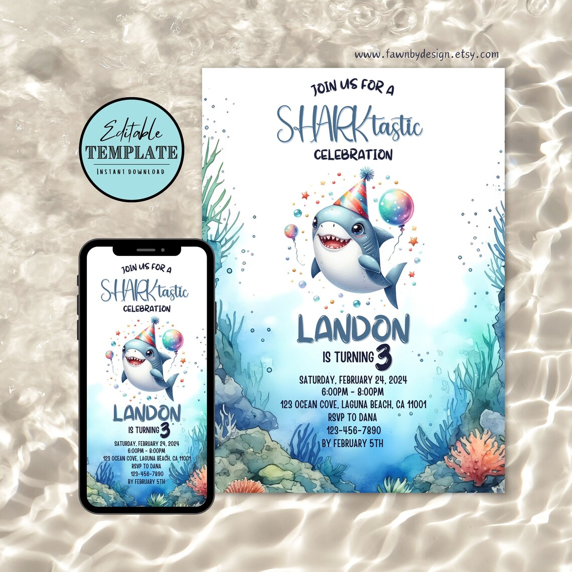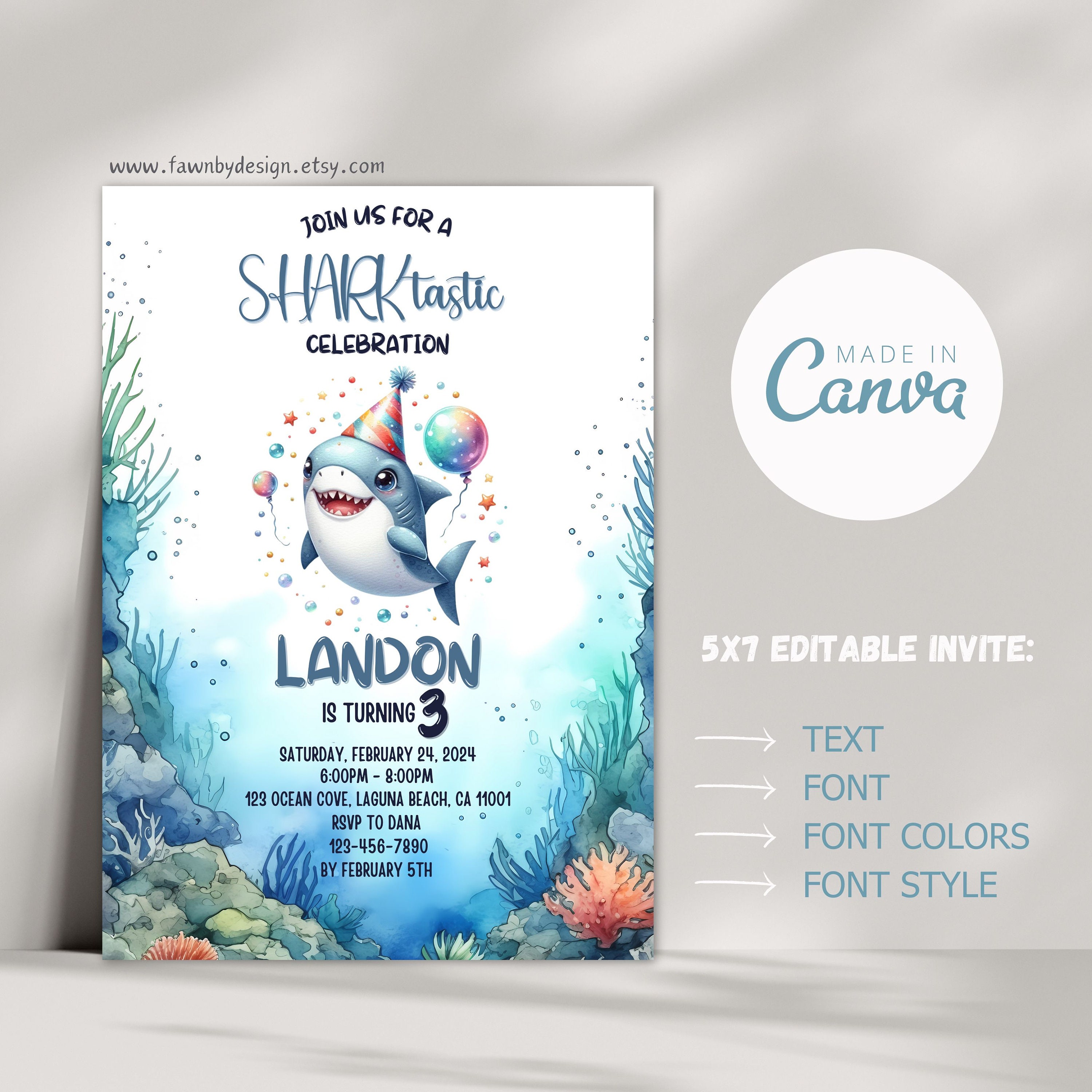 Editable Shark Invitation Shark Invites 5x7 Canva NEWS2 Etsy