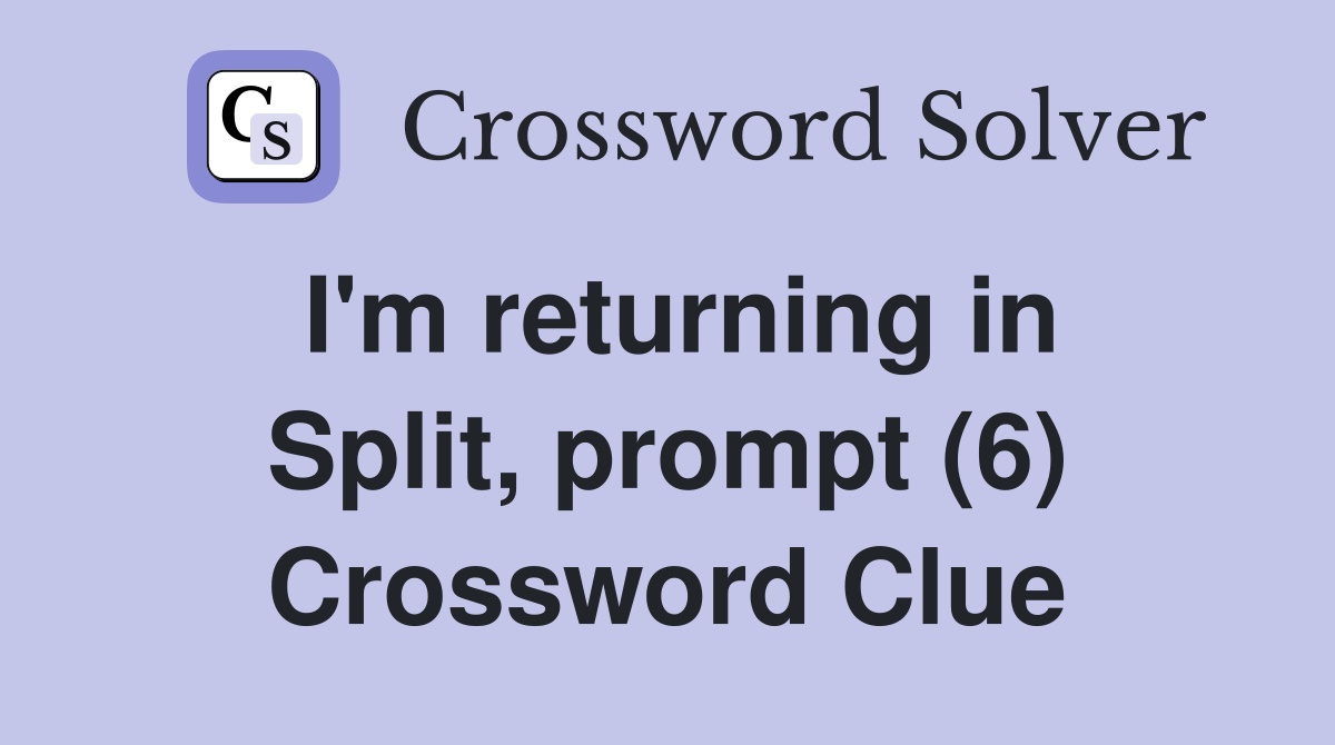 I #39 m returning in Split prompt (6) Crossword Clue Answers Crossword