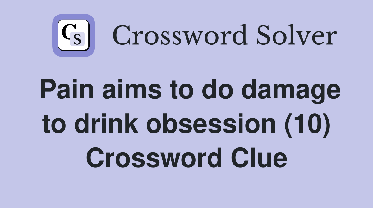 Pain aims to do damage to drink obsession (10) Crossword Clue Answers