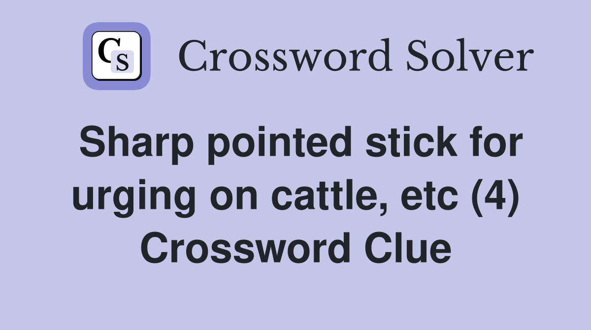 Sharp pointed stick for urging on cattle etc (4) Crossword Clue