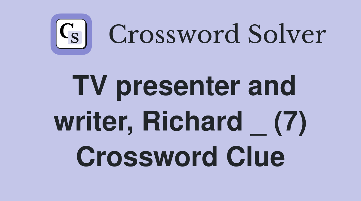 TV presenter and writer Richard (7) Crossword Clue Answers