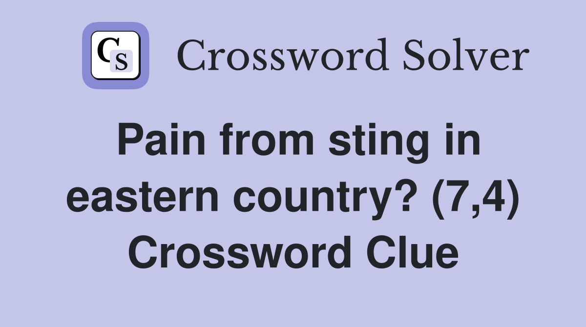Pain from sting in eastern country? (7 4) Crossword Clue Answers