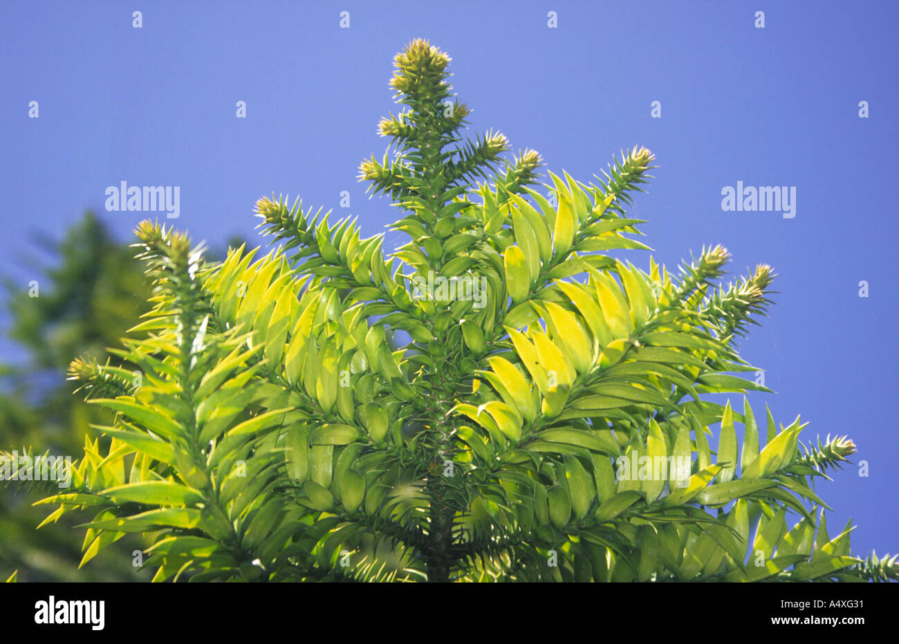 Sharp pointed leaves of the monkey puzzle tree Stock Photo Alamy