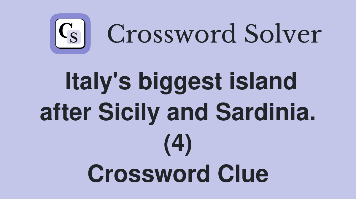 Italy s biggest island after Sicily and Sardinia (4) Crossword Clue