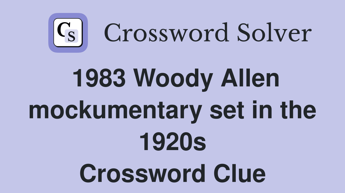 1983 Woody Allen mockumentary set in the 1920s Crossword Clue Answers