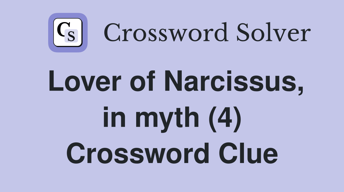 Lover of Narcissus in myth (4) Crossword Clue Answers Crossword Solver