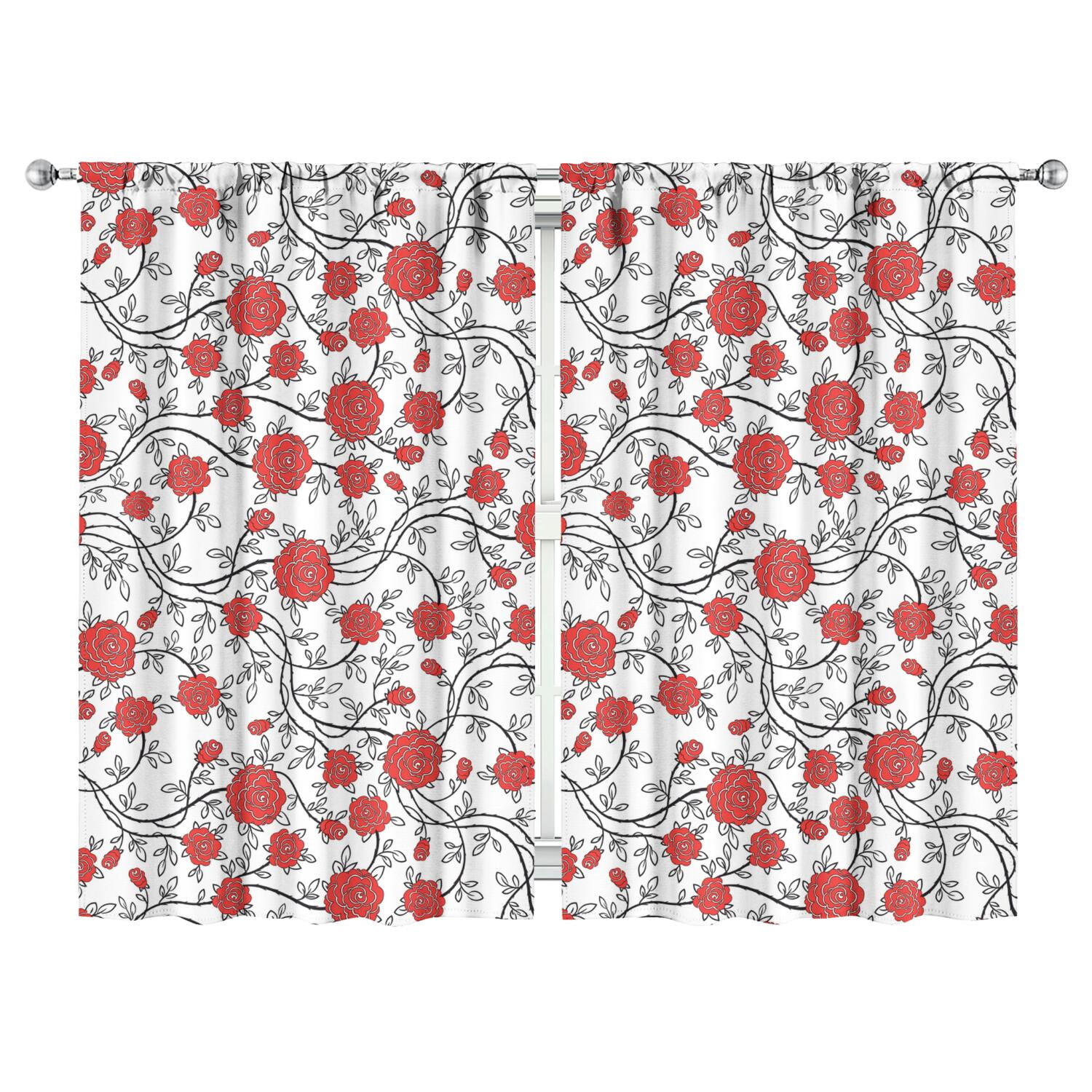 Aesthetic Floral Kitchen Curtains 2 Pack Artistic Watercolor Blossom