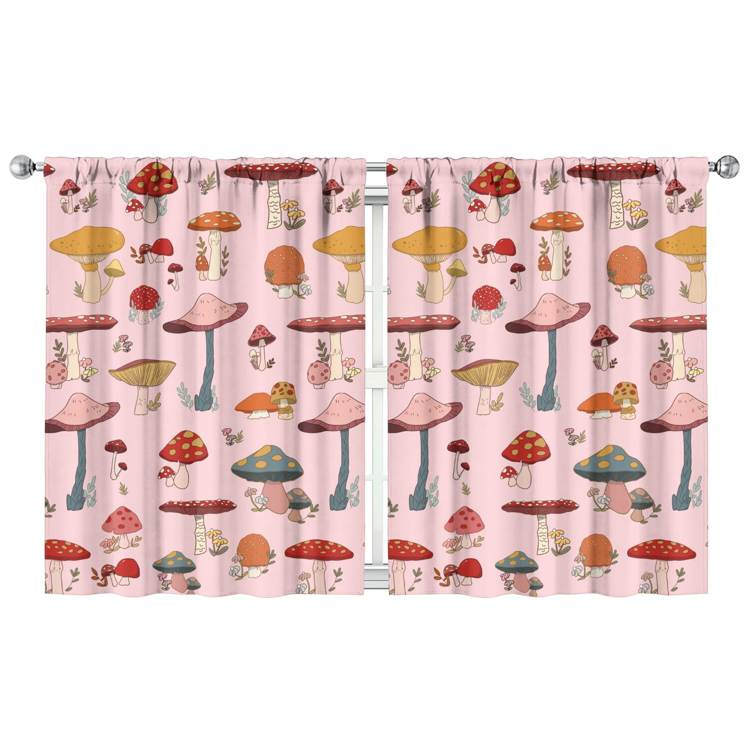 Aesthetic Fungi Curtains Set 2 Piece 42x54 Inch Semi Sheer Kitchen