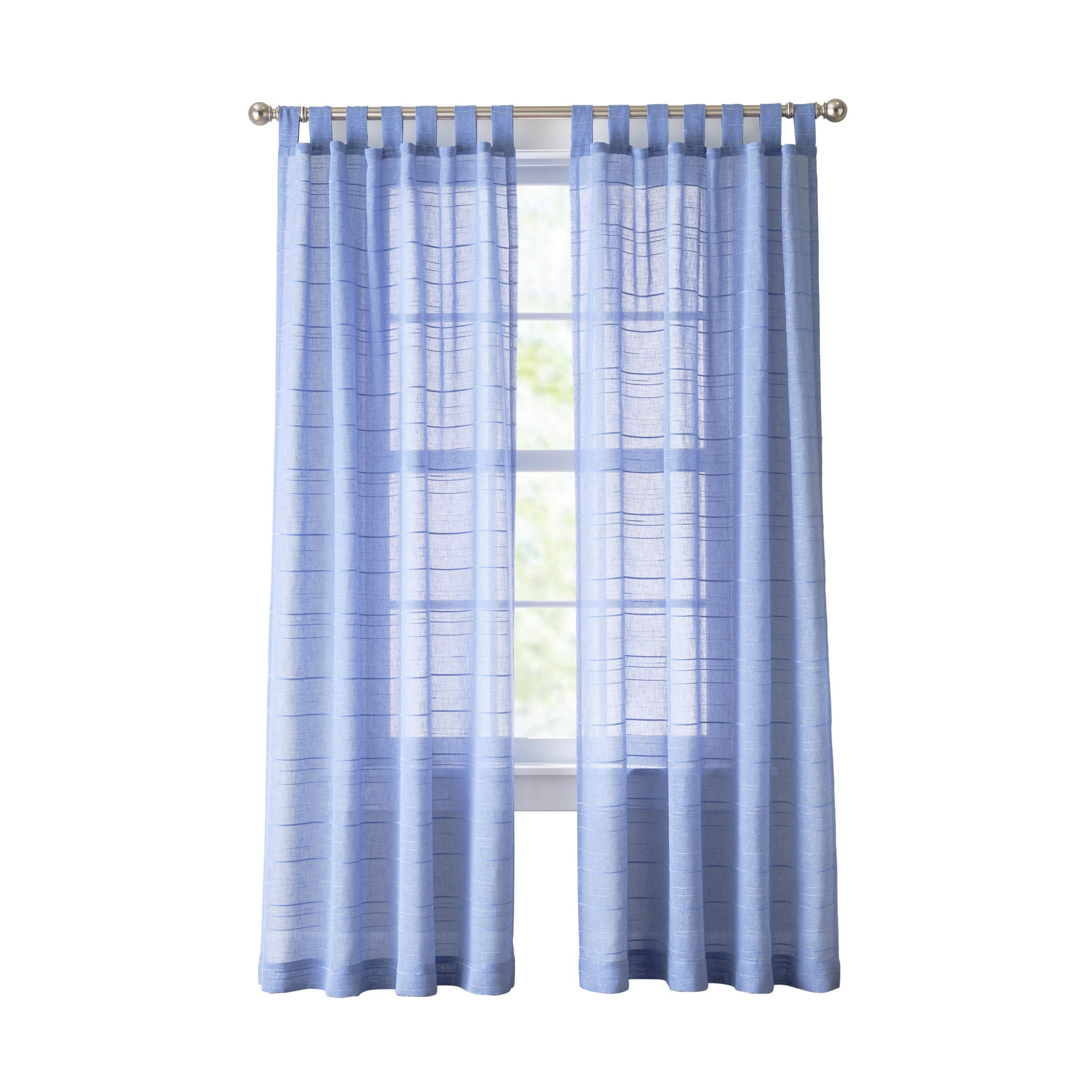 Mainstays Woven Stripe Sheer Tab Top Curtain Single Panel Blue 50 quot W