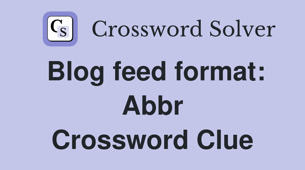Blog feed format: Abbr Crossword Clue Answers Crossword Solver