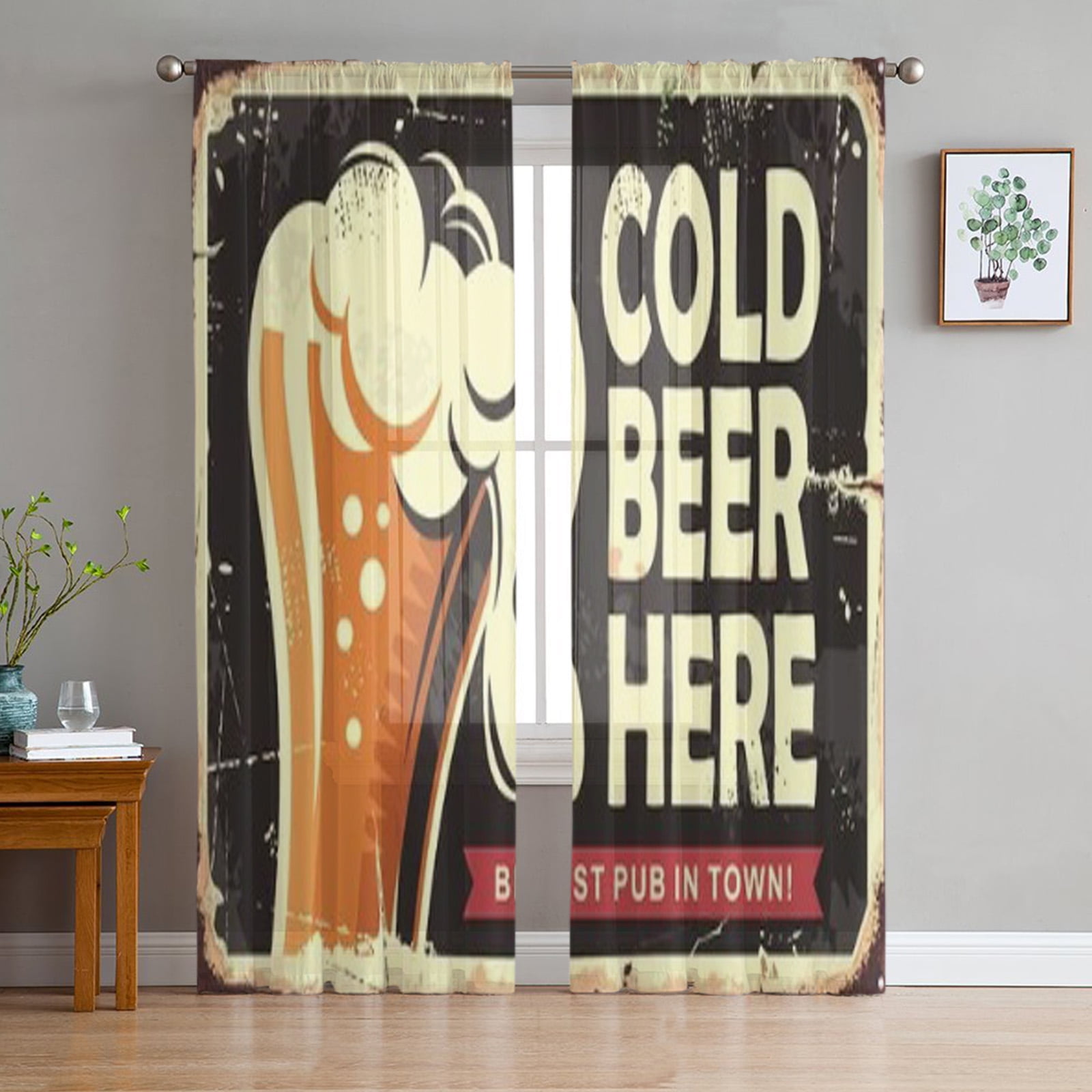 A Glass Of Beer Emblem Sheer Curtains for Living Room Transparent Tulle