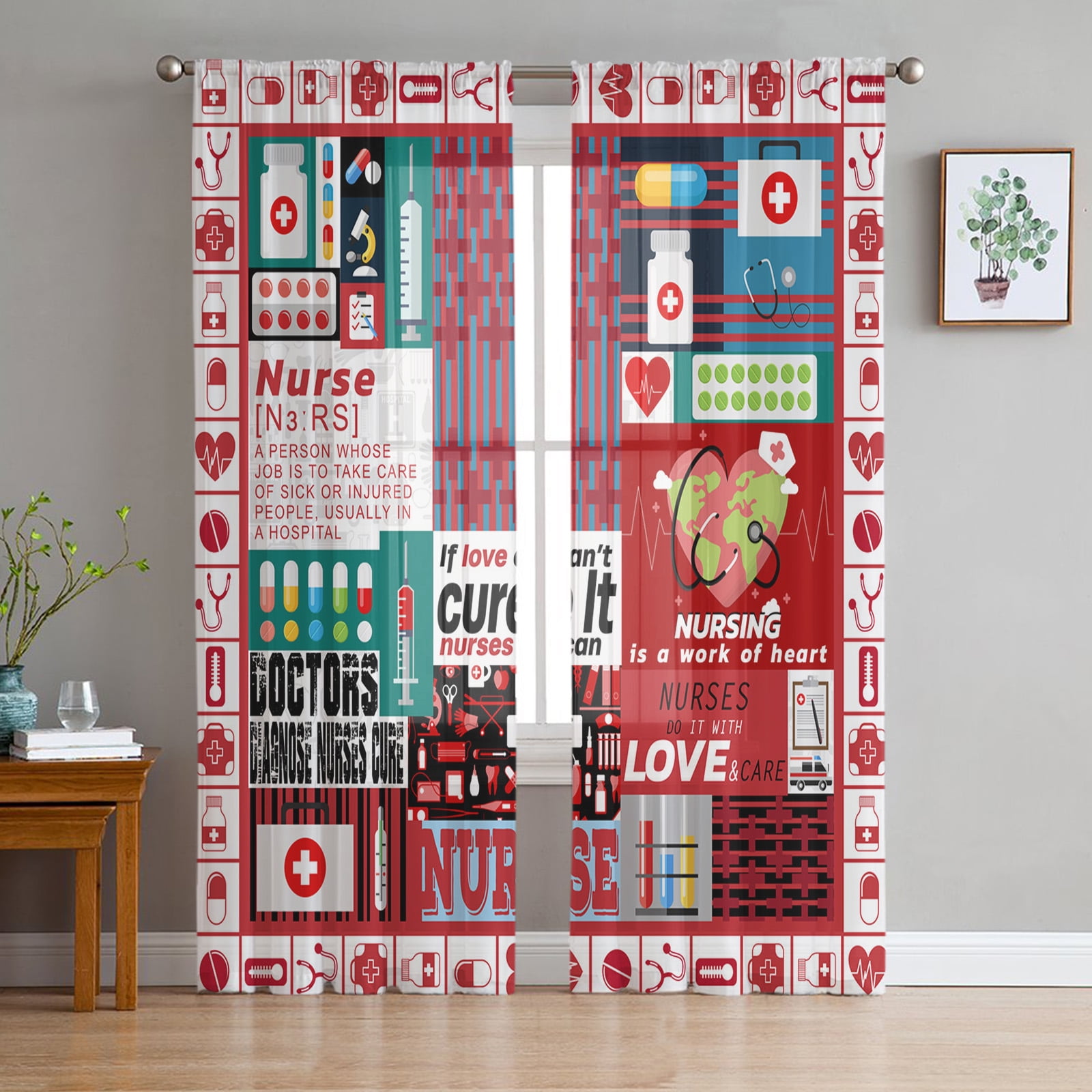 Cartoon Plaid Nurse Healthcare Sheer Curtains for Living Room Bedroom